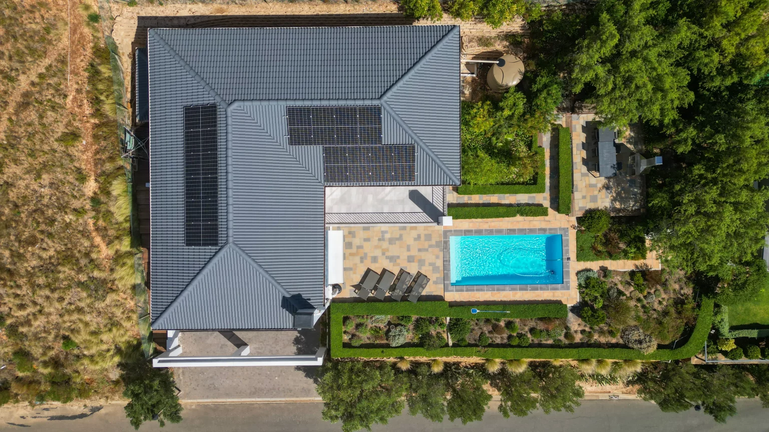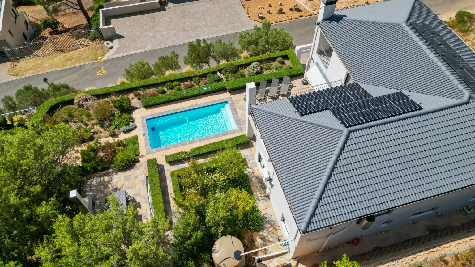 Luftaufnahmen einer Immobilie in Kapstadt. Durch Drohnenfotografie und Videoaufnahmen werden Lage, Architektur und Umgebung aus einer neuen Perspektive sichtbar.